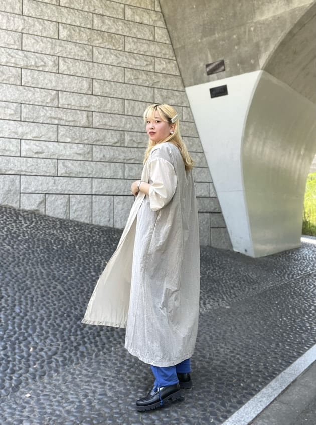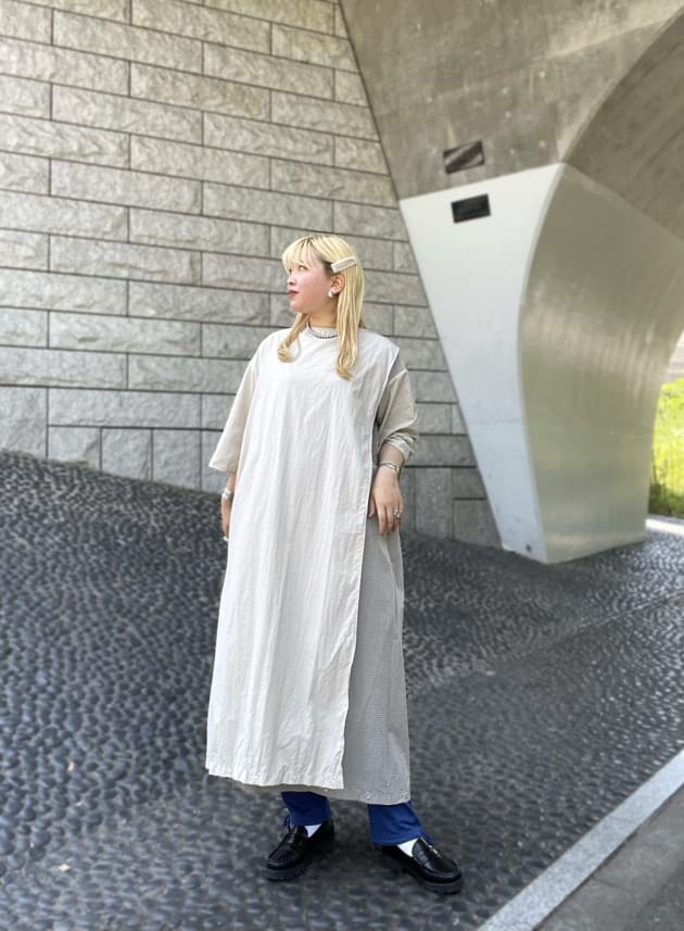 サラッとしていてナチュラルでリラックス感のある雰囲気。今の時期も着られますし、秋冬はレイヤードスタイルを楽しめるのでオールシーズン着られてオススメ◎