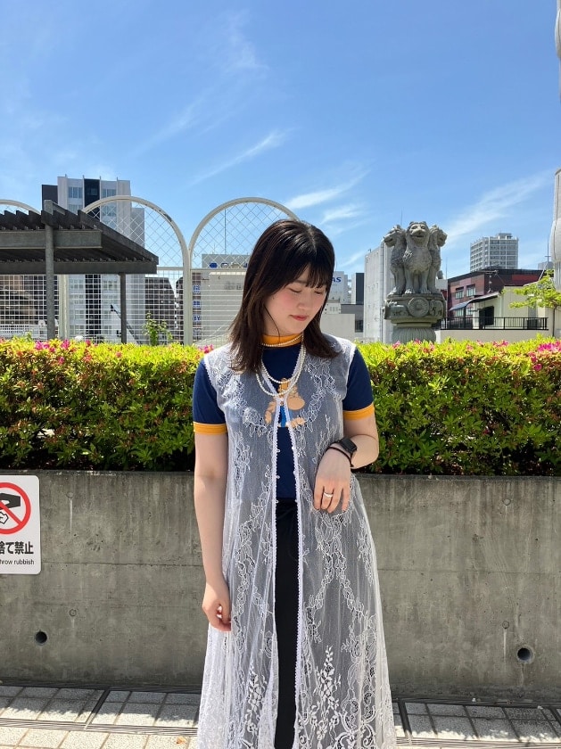 今回はジャケットと合わせましたが、りぼんの結ぶ強さ次第で調節可能なので、インナーによって変えられるのです!!