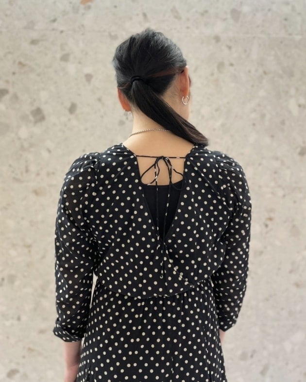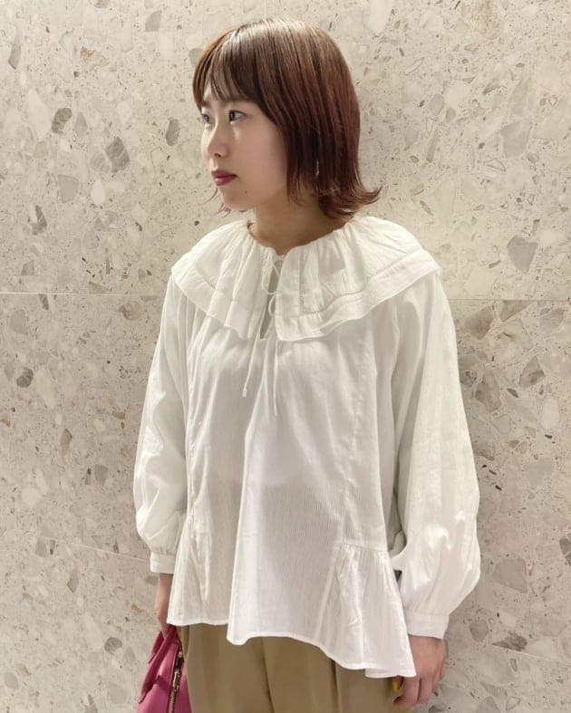 女性らしいデザインと生地の柔らかさがマッチしていますね