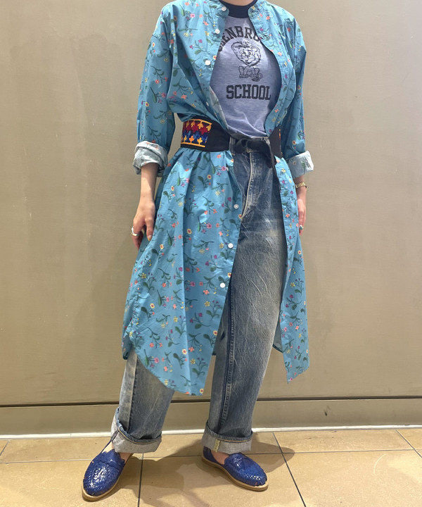 バンドカラーがクレリックなので花柄の中でも首元にアクセントがきいています!