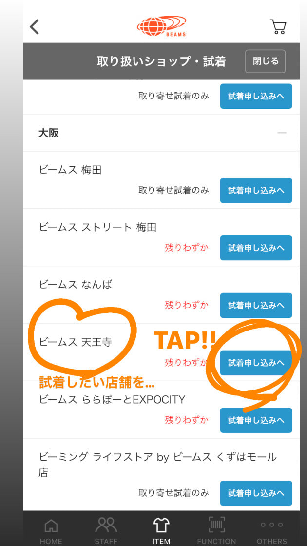 【ショップで試着する】をTAP!