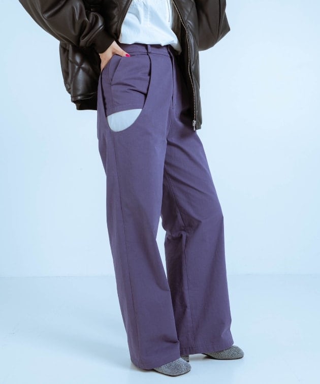冬ver.カットアウトパンツは、こっくり紫が意外と万能でこの季節はニットやスウェットに合わせて履きたい◎