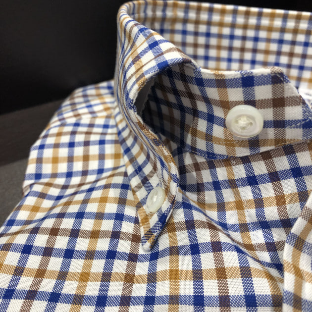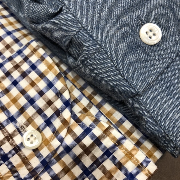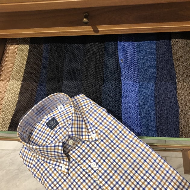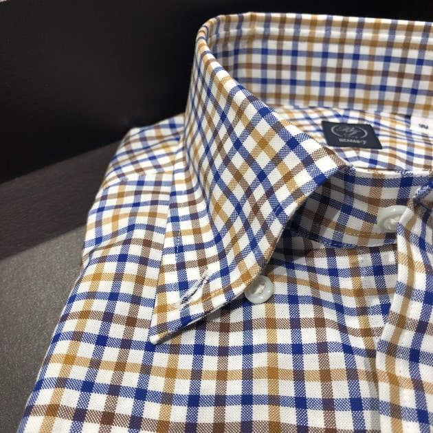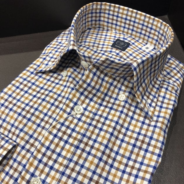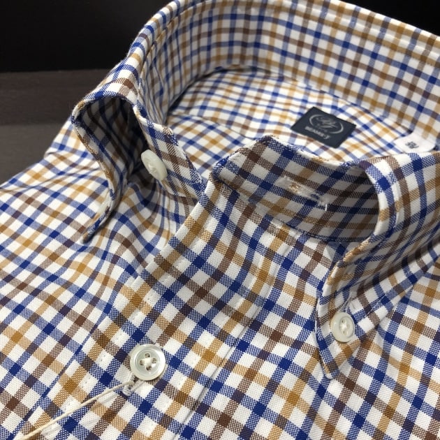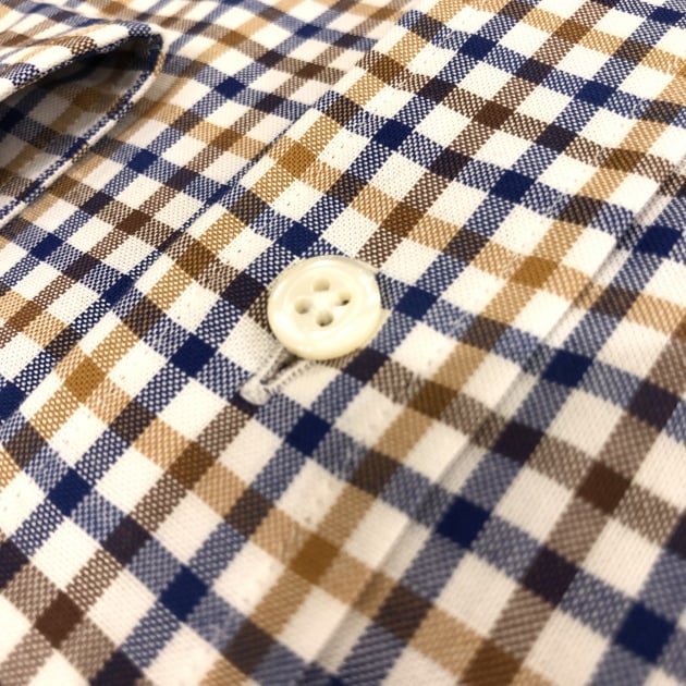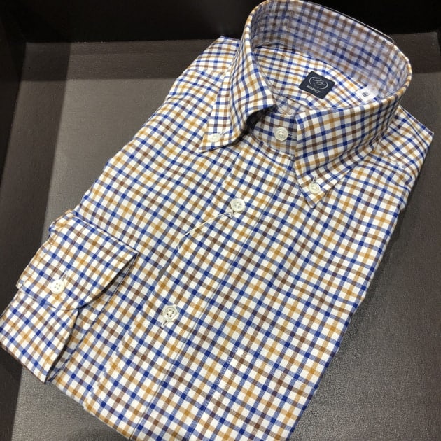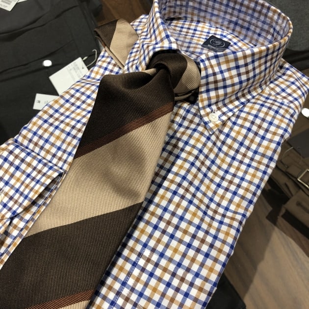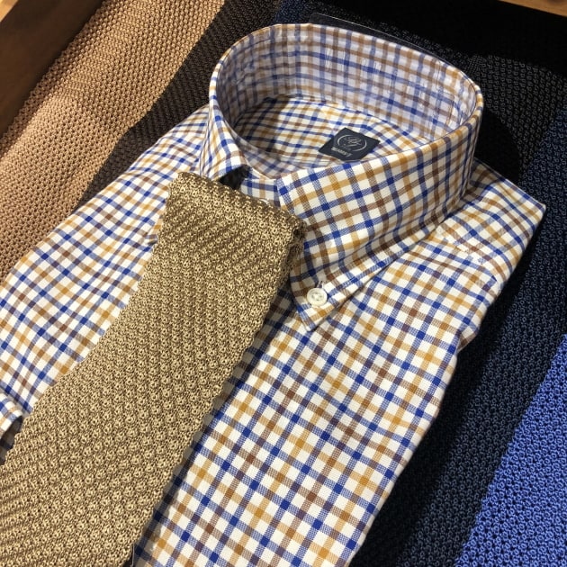 今季のギンガムは、色がブルー、ブラウンともにやや薄めのトーンで、
