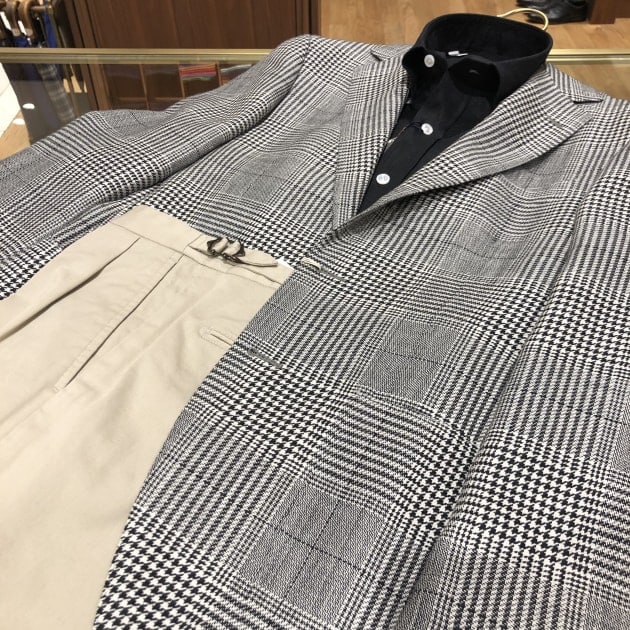 スーツでも、コットン素材ならギンガムボタンダウン、イけます。