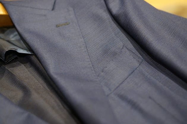 2本の糸を撚り合せたツイスト糸を使用しています。耐久性があり、防シワ、防摩擦性に優れるというビジネスマンの強い味方的スーツです。