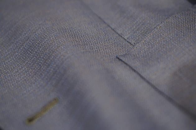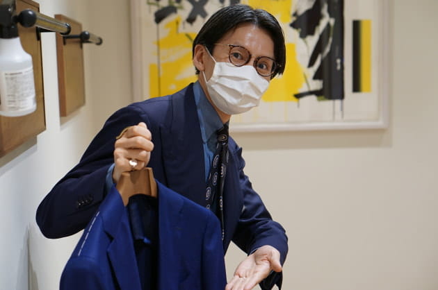ワイドピッチのラペルに立体的な肩周り。