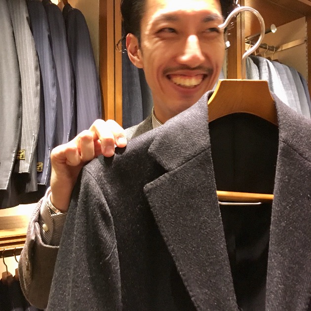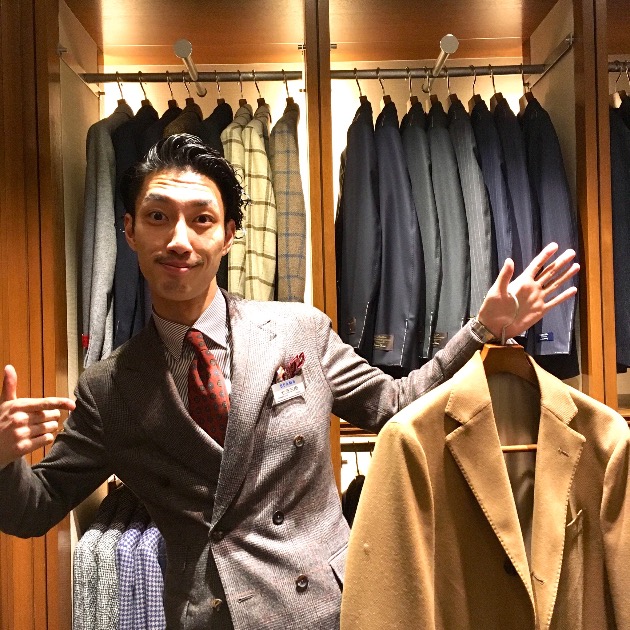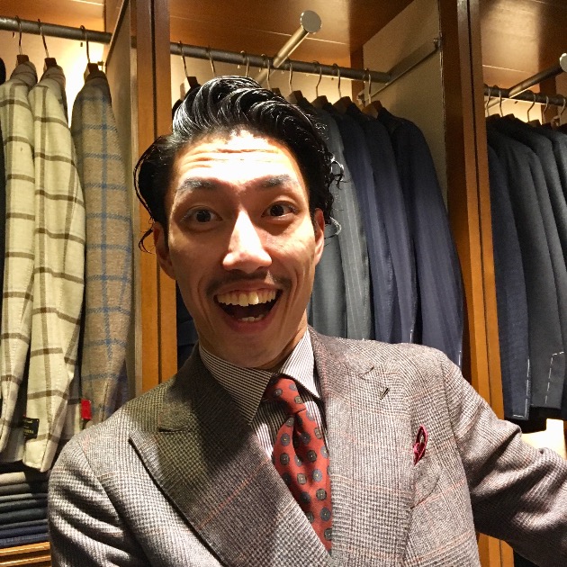 スタッフ中村。バシッと決まった大人のスーツスタイルに大変身。