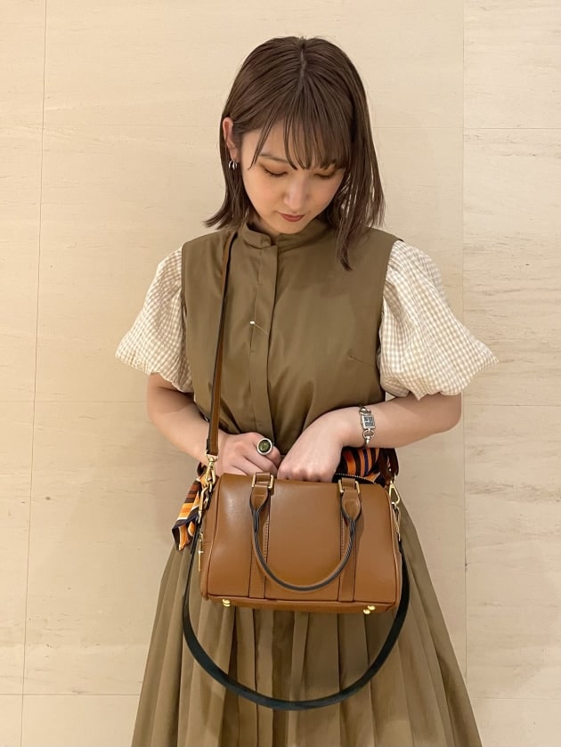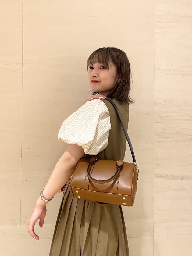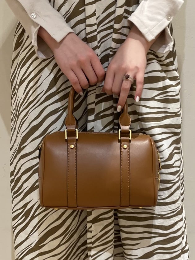 ブラウンのボストンバッグはショルダーが深めのグリーンになってます!