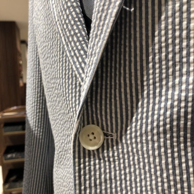 スーツの雰囲気に合わせて、ボタンも選りすぐりのモノをチョイスしています、オリジナル。