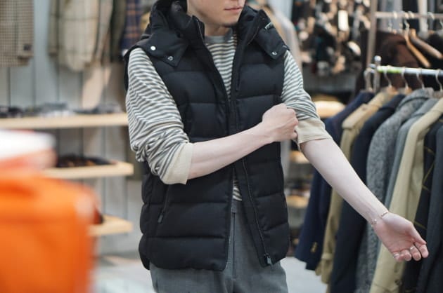 カジュアルシャツのインナーにレイヤード。あるショップのマネキンにて拝見しました。同色で合わせてクドく見せないのがポイントでしょうか。