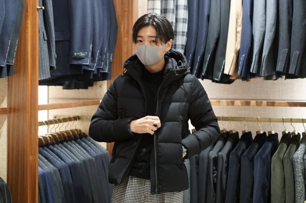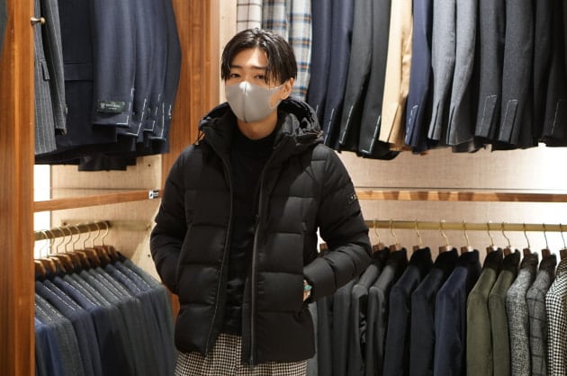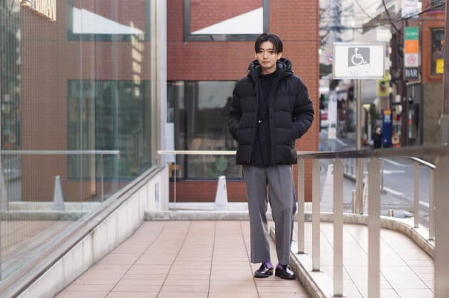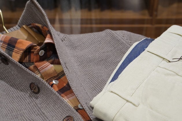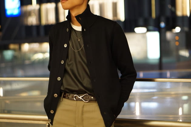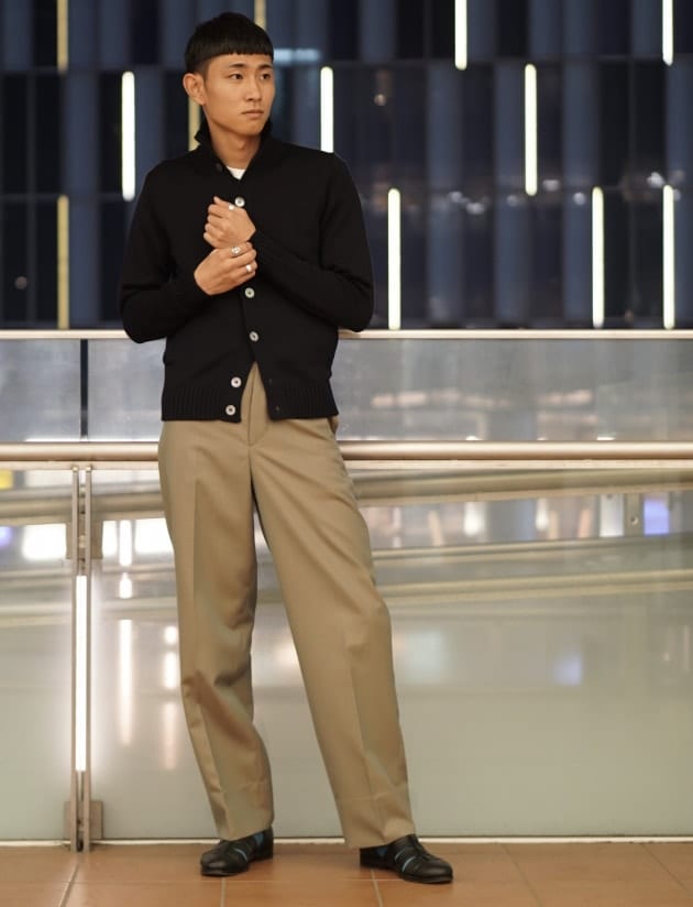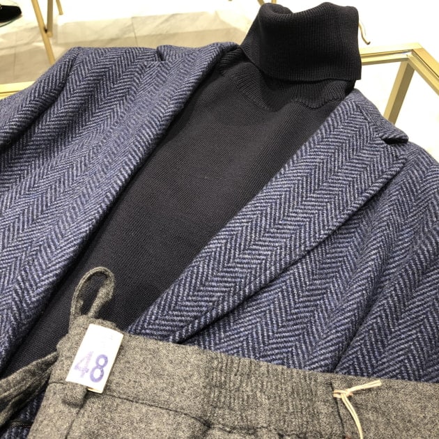 私はネイビージャケット、ウールパンツに合わせました。これからのクールビズ、在宅スタイルにも非常に使えます。