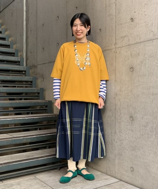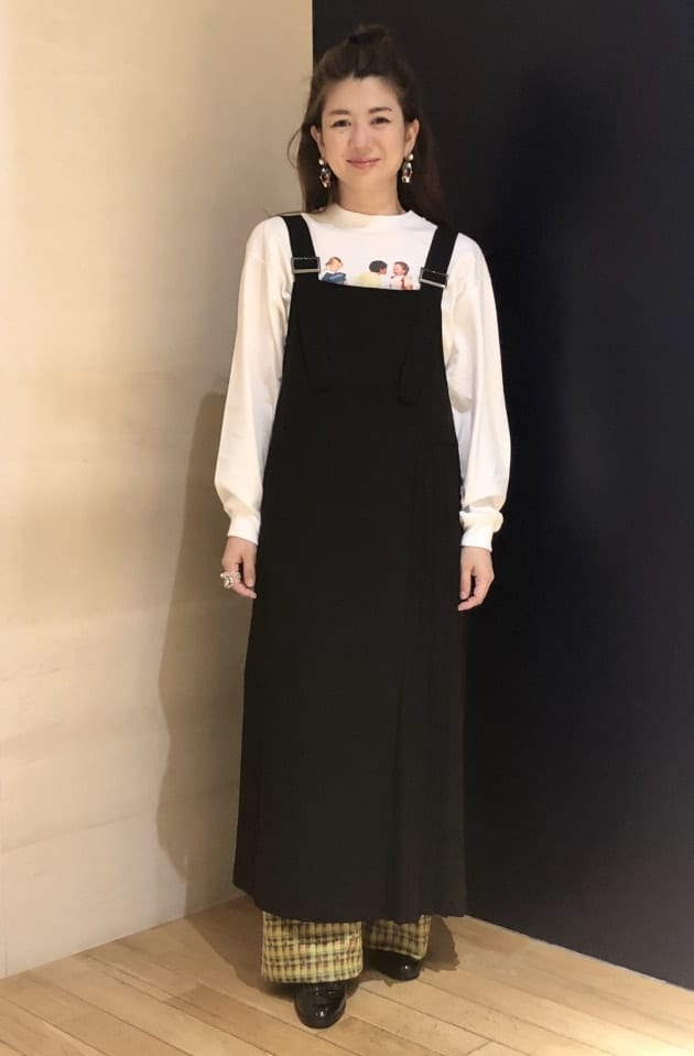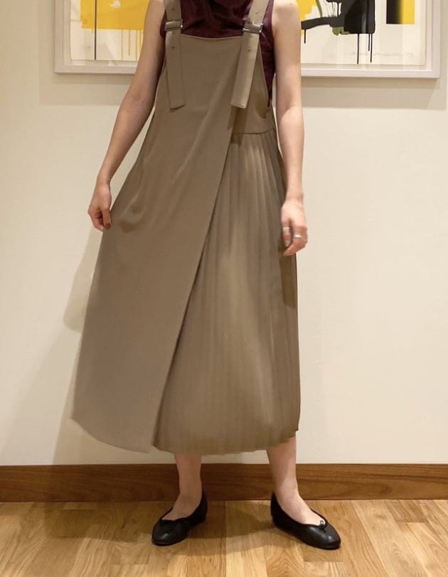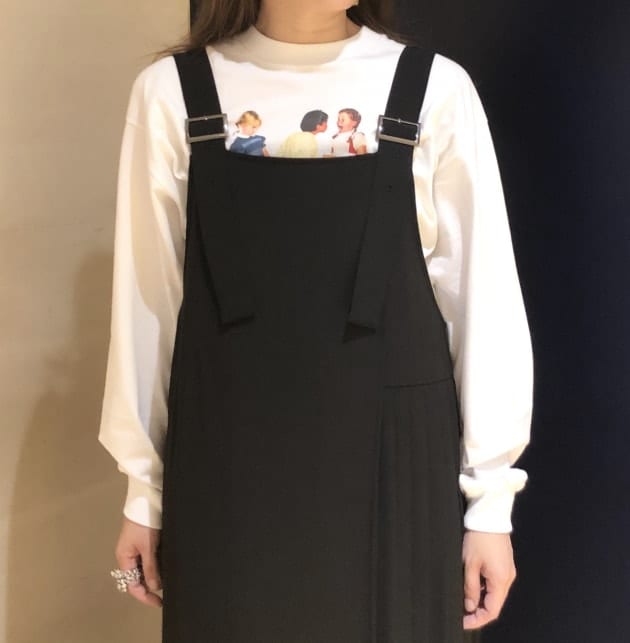 新作のサロペットワンピースを主役にしたコーディネートです。