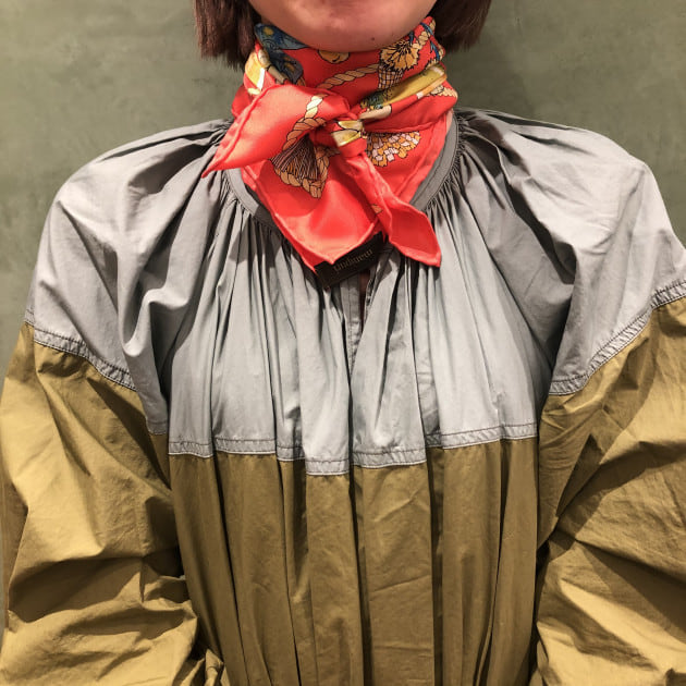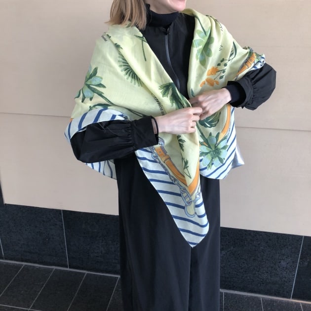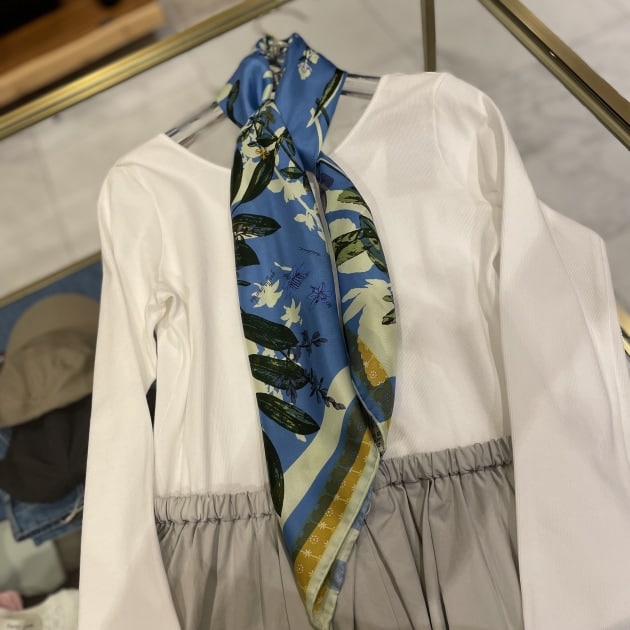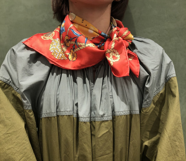 僕がスカーフにフォーカスしたちゃんとした理由は特になく、最近気温が上がりますます春らしくなってきたのでスカーフ巻きたいなぁと感じたからです。それとおしゃれなスカーフが入荷してきたからです。