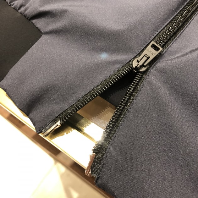 前身の生地は、マットな質感のストレッチナイロンを使用。撥水性もあります。
