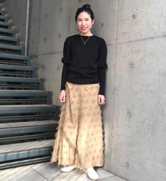 刺繍をポイントにしたかったので、他は色を控え黒をベースに小物も纏めています。