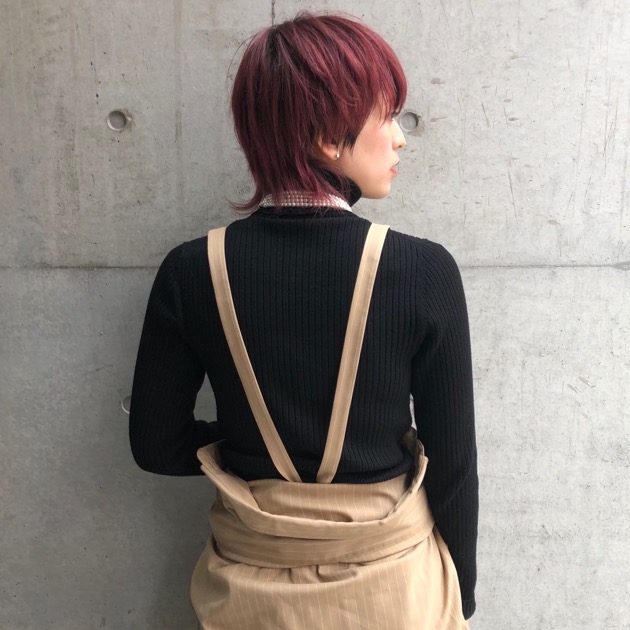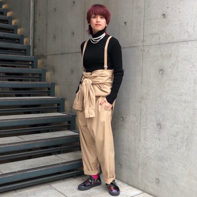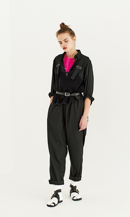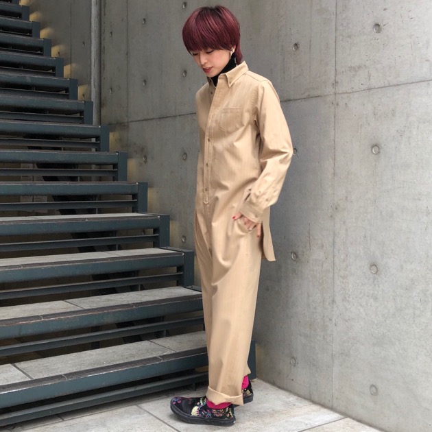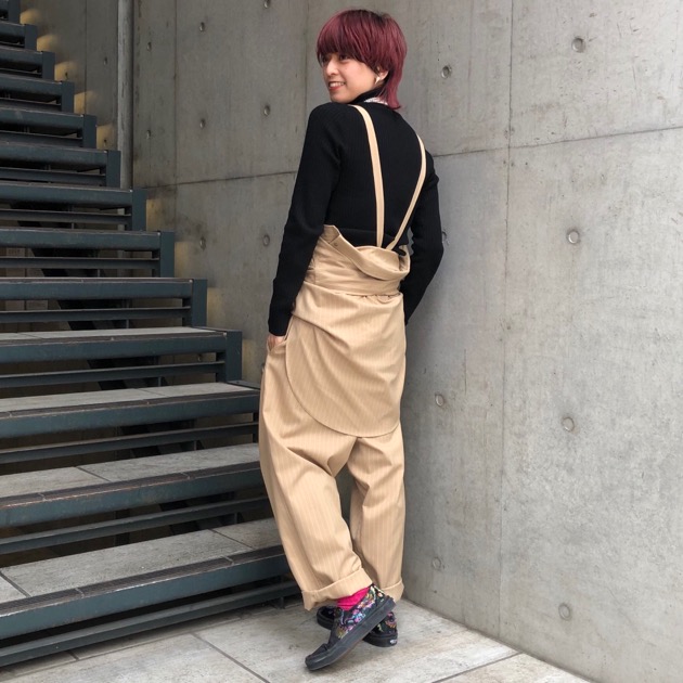 ウエストをベルトでマークしてボリュームを抑えてバランスをとりました。