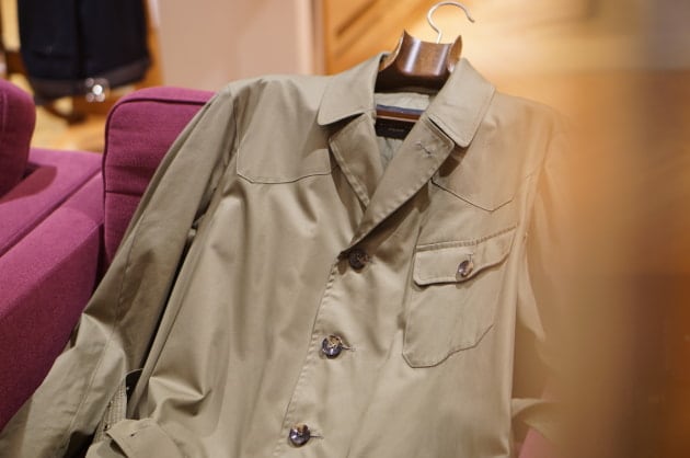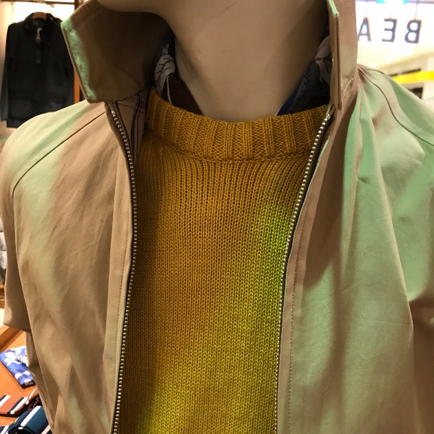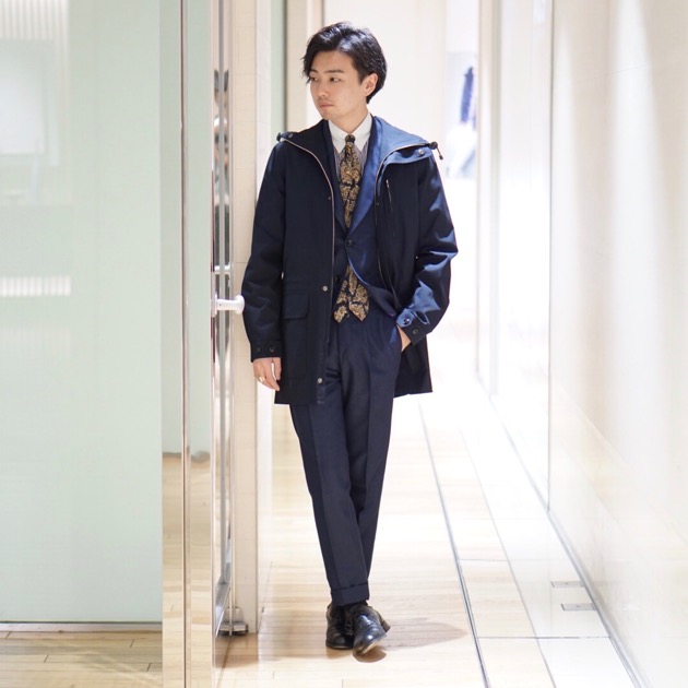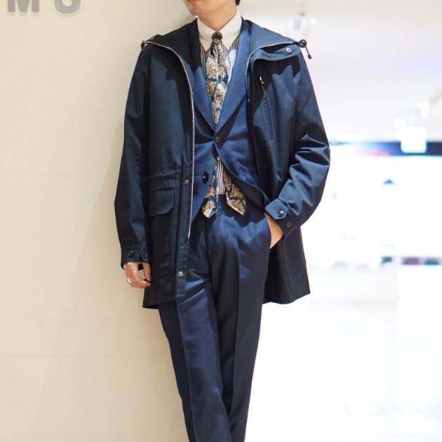 カジュアルジャケットとのレイヤードが非常に洒落てますね。