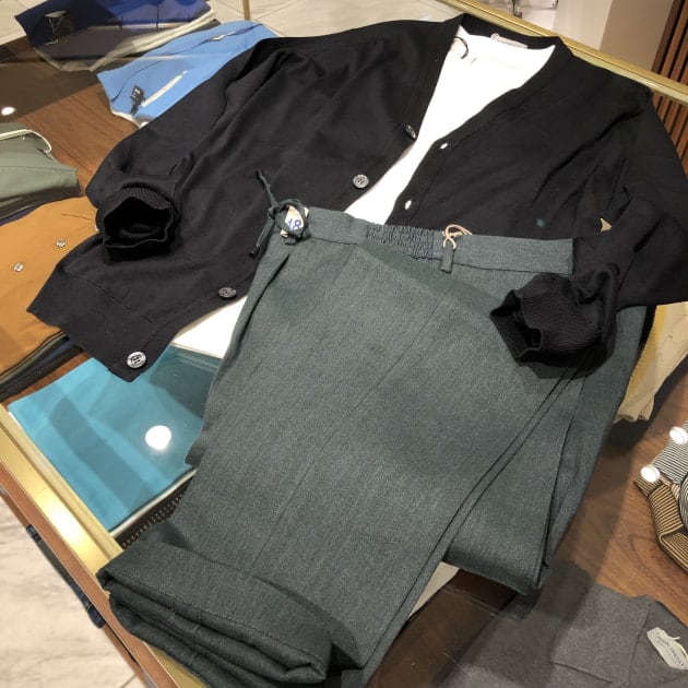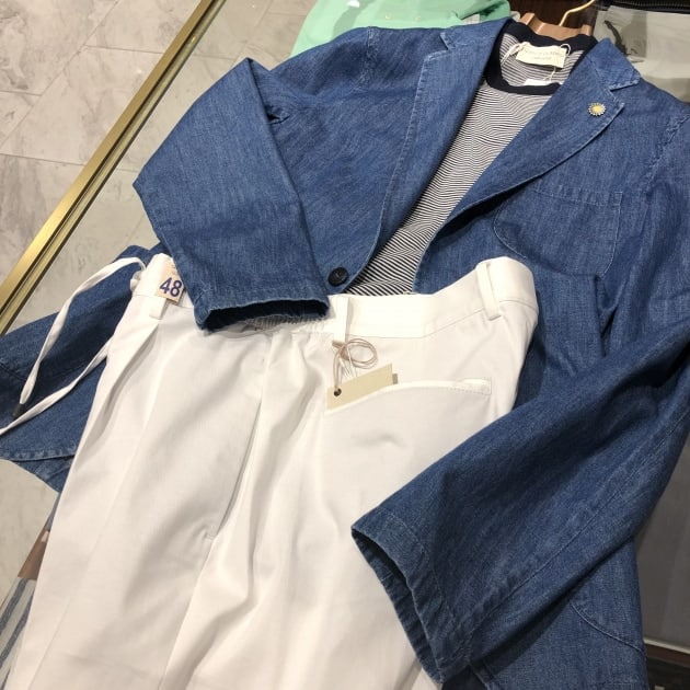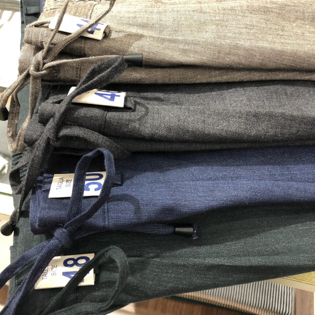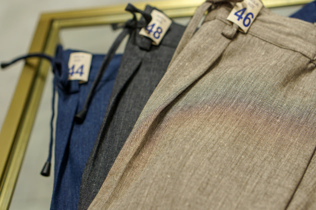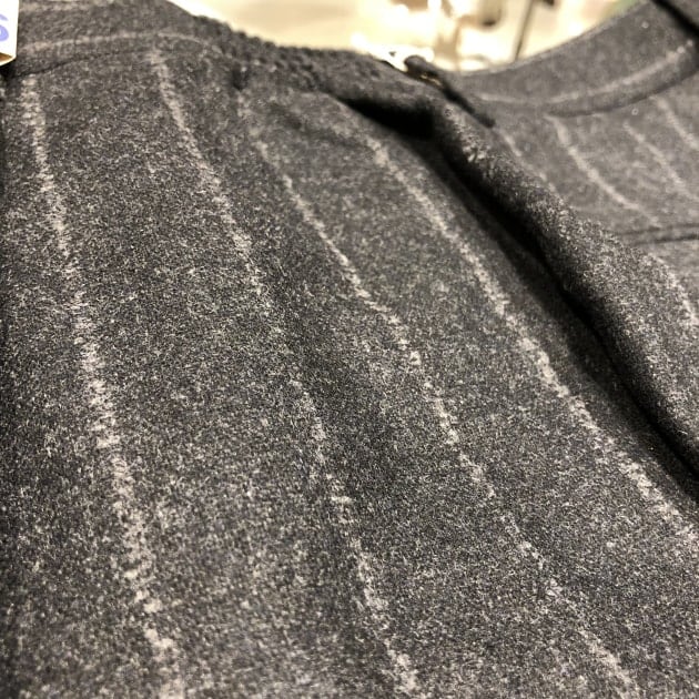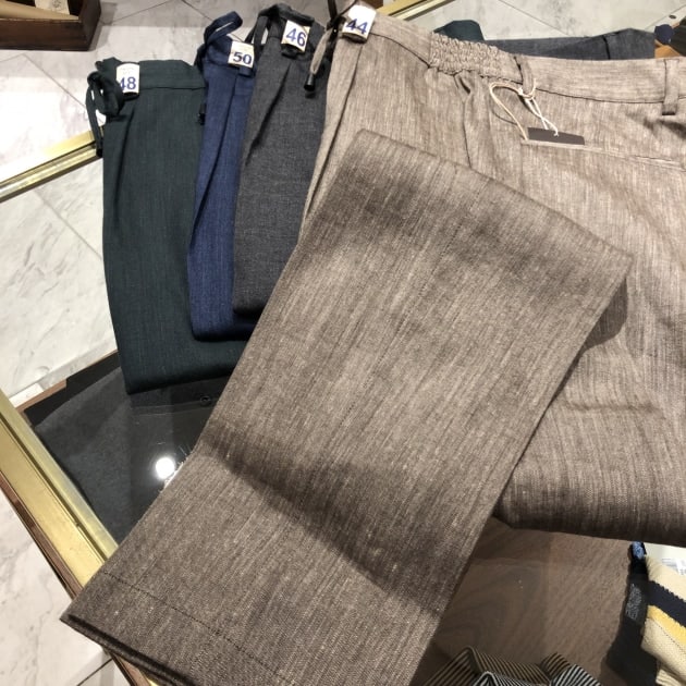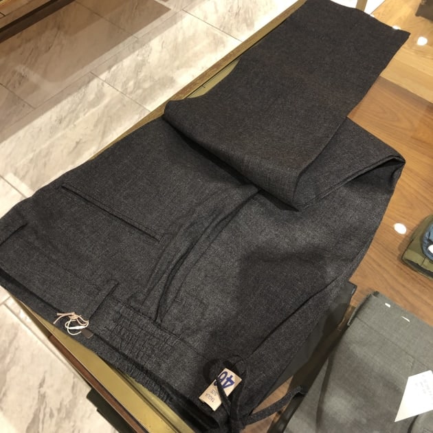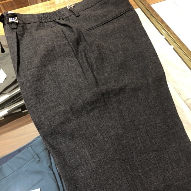 ぼくはこの辺りのパンツを購入すると決まってセンタークリースを修理屋さんにお願いして入れてもらっています。(クリース好きとスタッフからも言われます。)