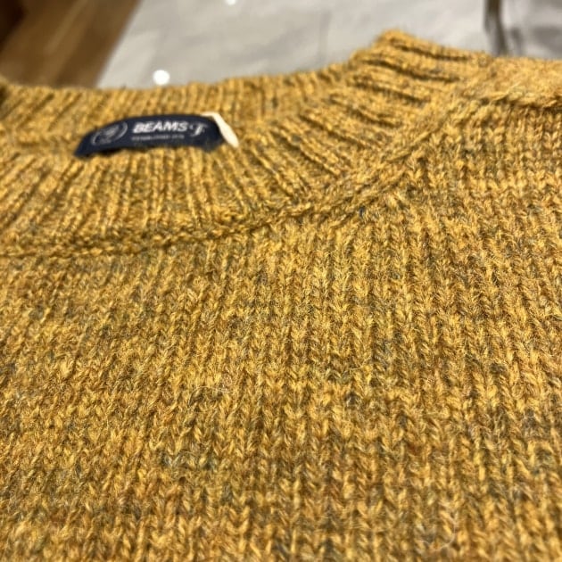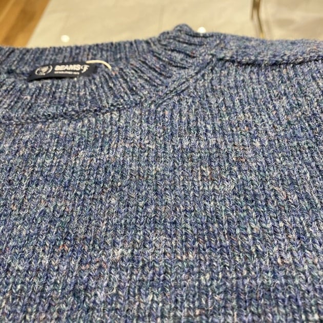 イギリスの工場で英国の糸を用いて作られます。型は1980年代当時のBEAMS Fオリジナルのクルーネックをベースとした普遍的なニットです。