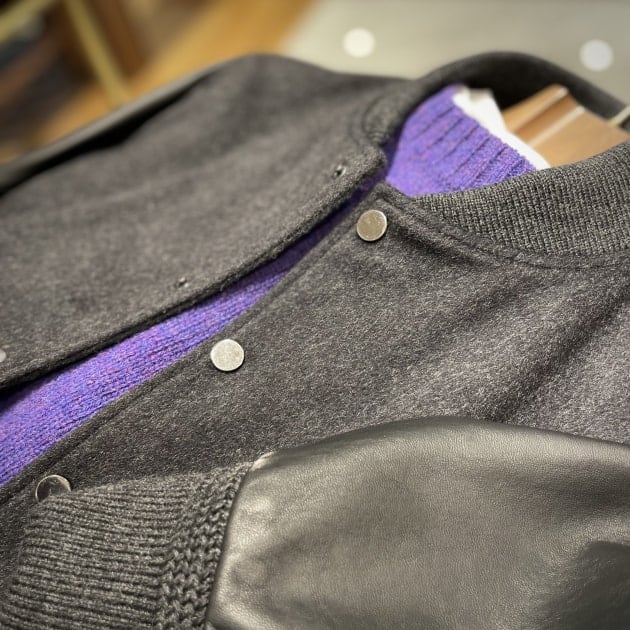ダーク系アウターからチラッと紫色。