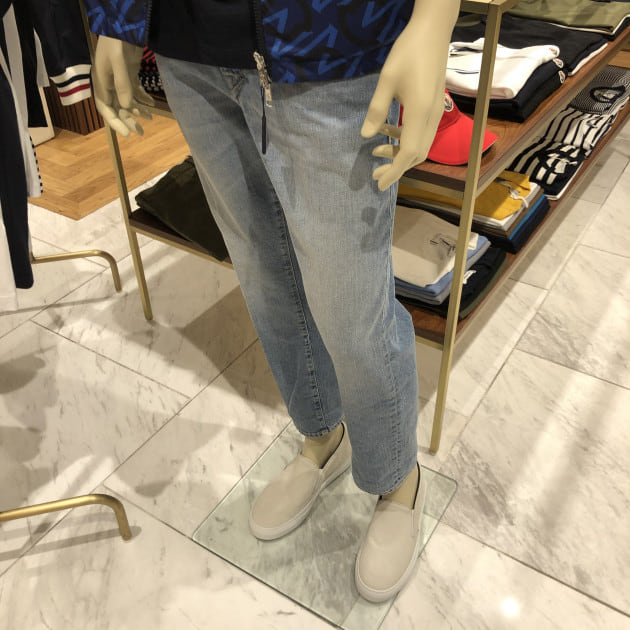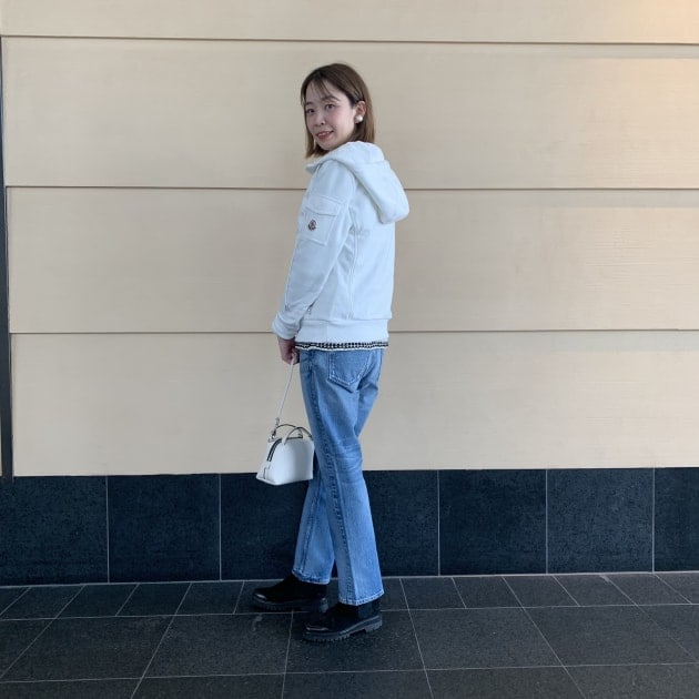 少しウォッシュのかかったデニムで大人のカジュアルスタイルが完成します。
