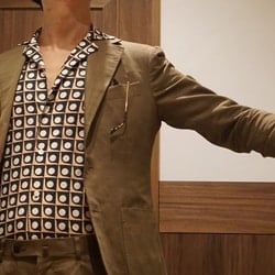 是非皆さまも「ブリック」色のオープンカラーシャツ。お確かめください。