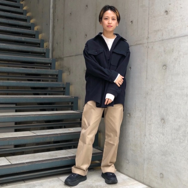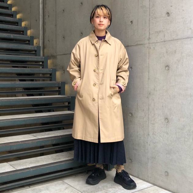 他にもこちらのステンカラーコートは、ゆとりがあるデザインなので