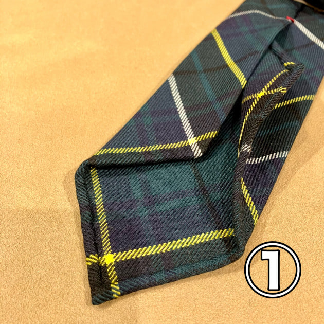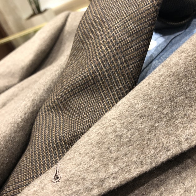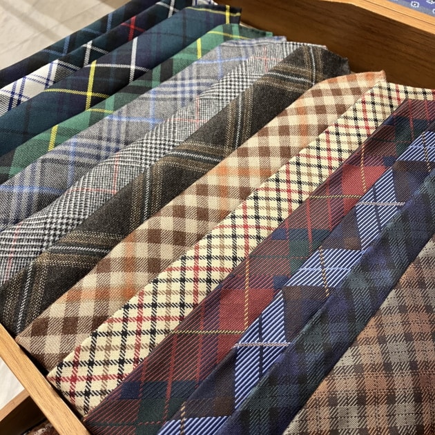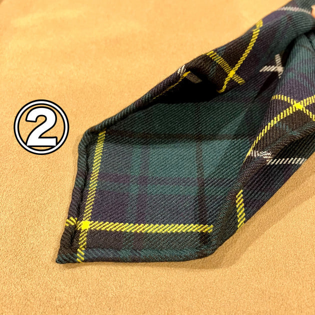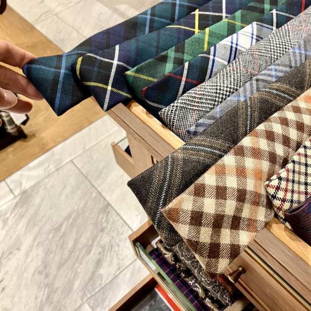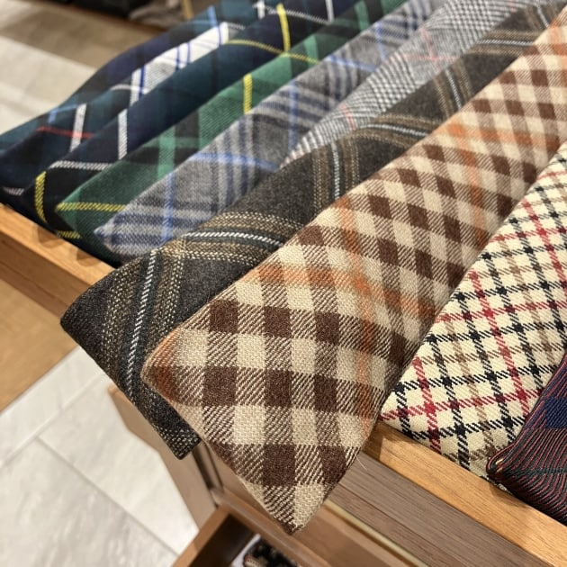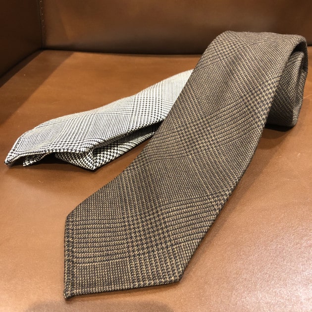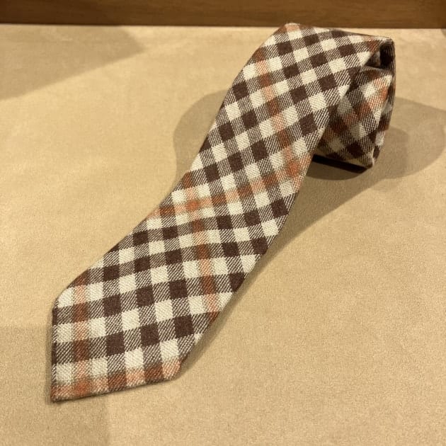 こちらも、もちろん「トレピエゲ」仕立てで軽い仕上がりですので、ウールネクタイになりがちな結び目がドカッと大きくなりません。