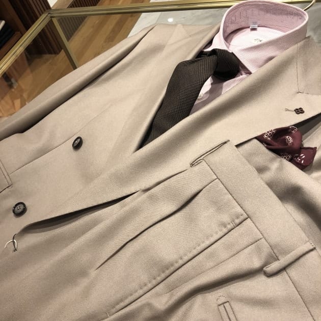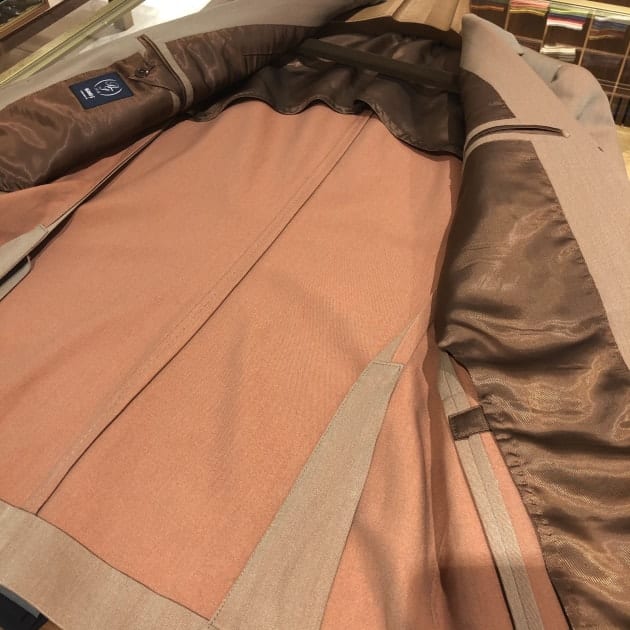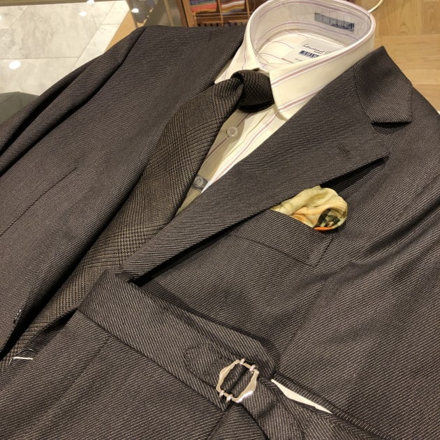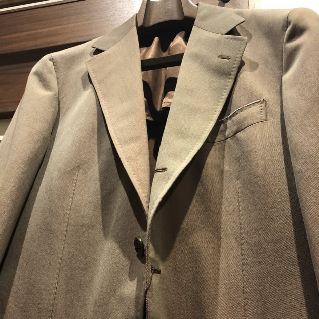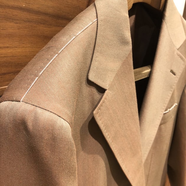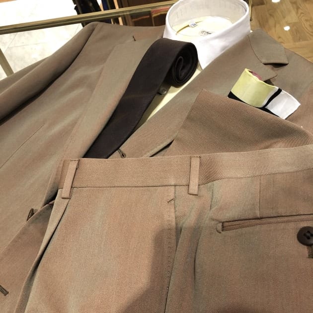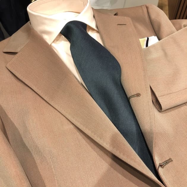 陽の当たり方、見る角度によって表情を変えるこんな生地のスーツ。