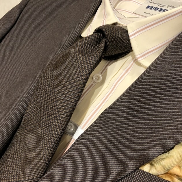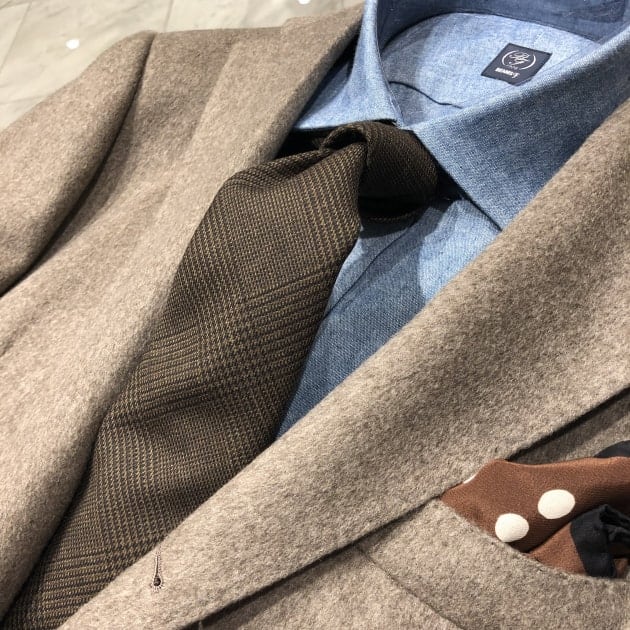 ブラウンの麻のネクタイを添えてみました。