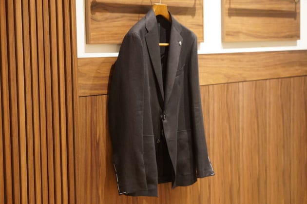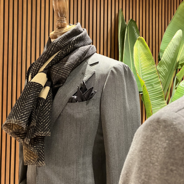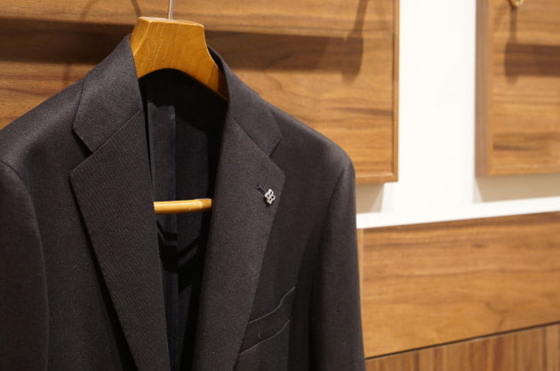 普段のジャケットパンツに合わせて頂いてもかなり引き締まる印象に。