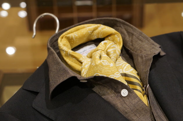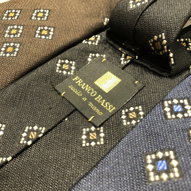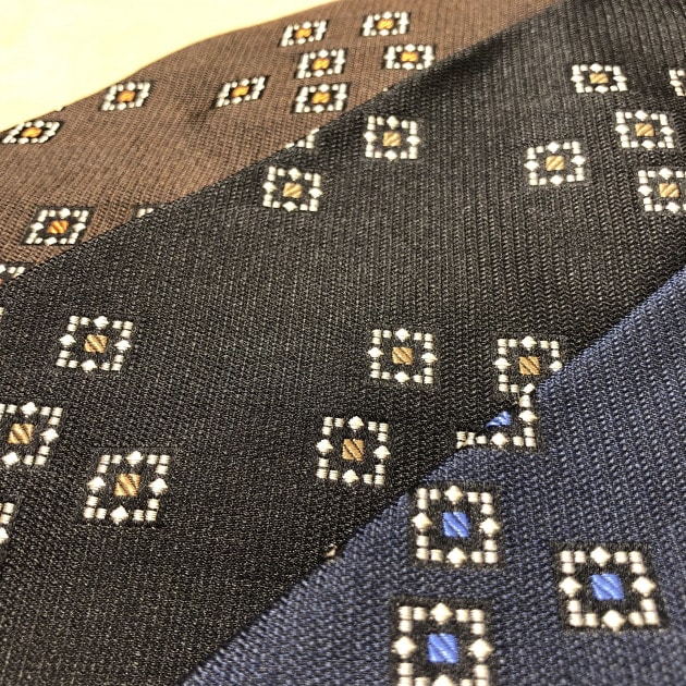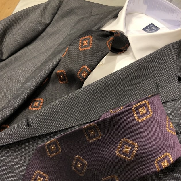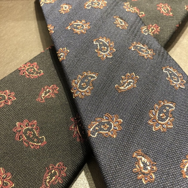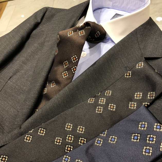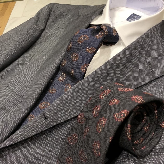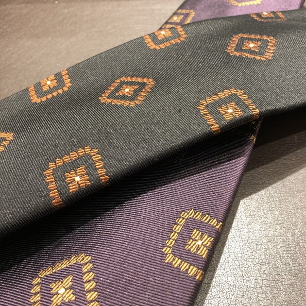 普段ネイビーベースのネクタイが多い方はガラッとイメージを変える事が出来ると思います。