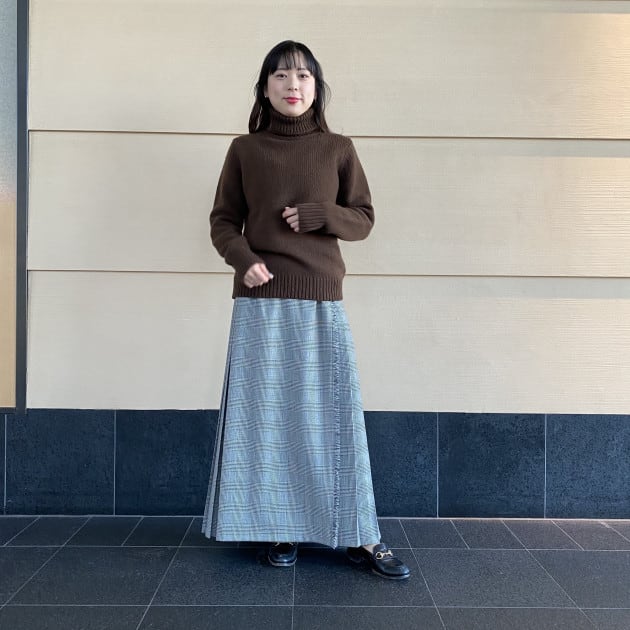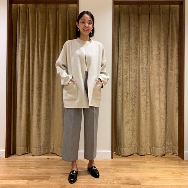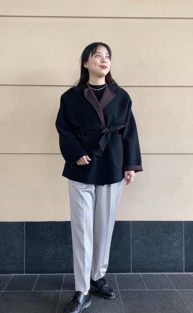 ショート丈ですが、ヒップはすっぽり隠れるのでパンツやタイトスカートと合わせるのもおすすめですよ。