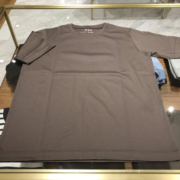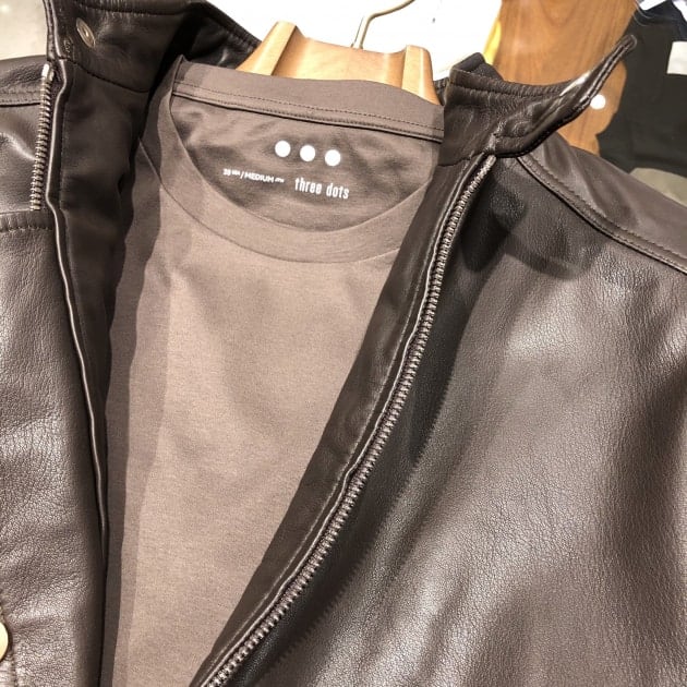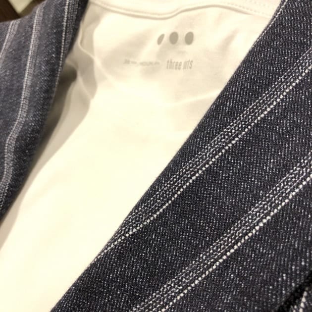 久しぶりに着用画像を。普段サイズ44の私が、サイズS着用で程良いサイズ感です。