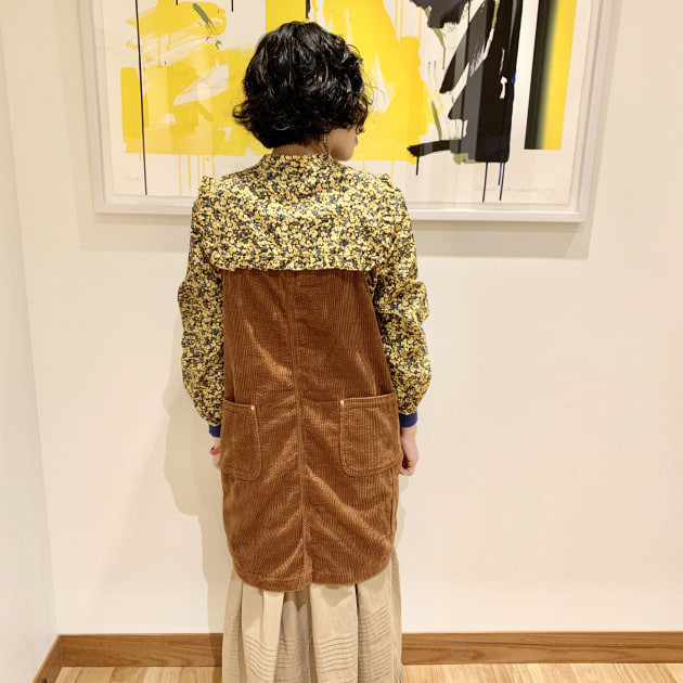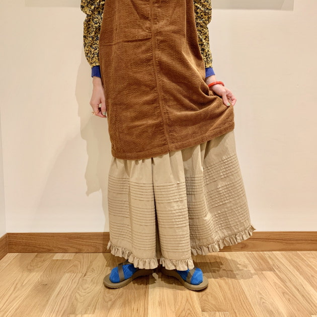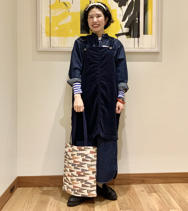 ほっこりした印象になりすぎないようにスカートはしっかりと長さのある物を選び、キャップやバッグでシティ感を出しました。