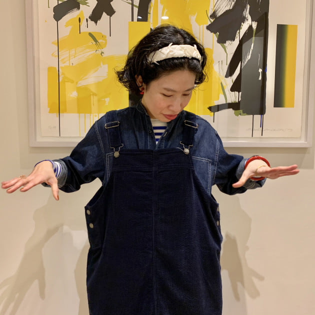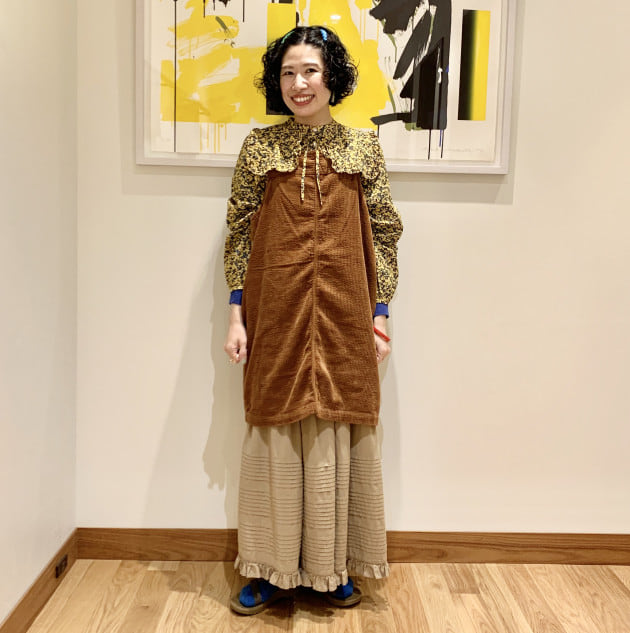 ニットの下にシャツを重ねて裾を出す、少しメンズライクな着こなしで斎藤のキャラクターにもよくお似合いです!