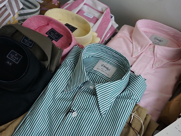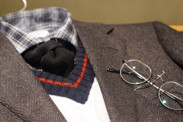 クレリックシャツに、トーンの明るいネクタイ。爽やかなVゾーンも良いですね。