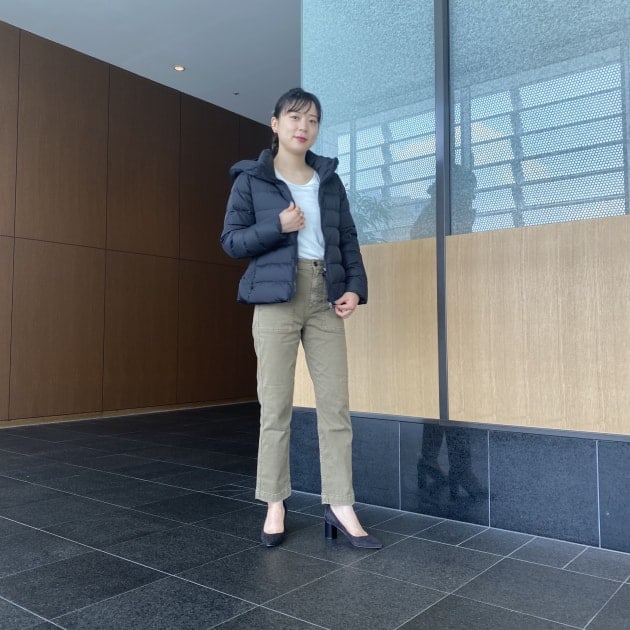 着るだけでスタイルアップして見えるショートダウンを着比べ、