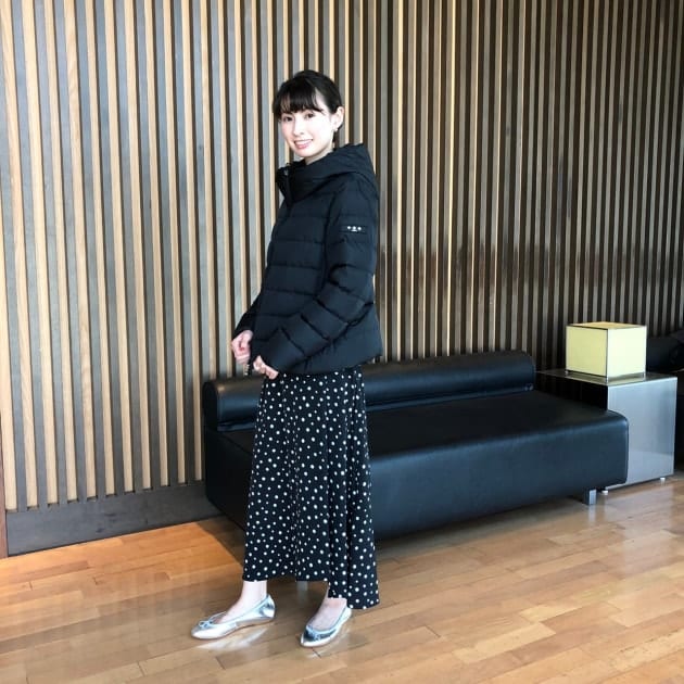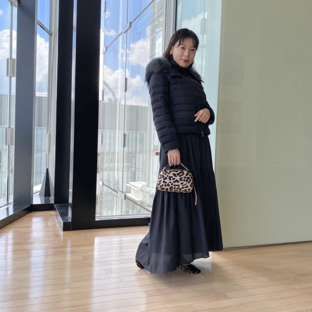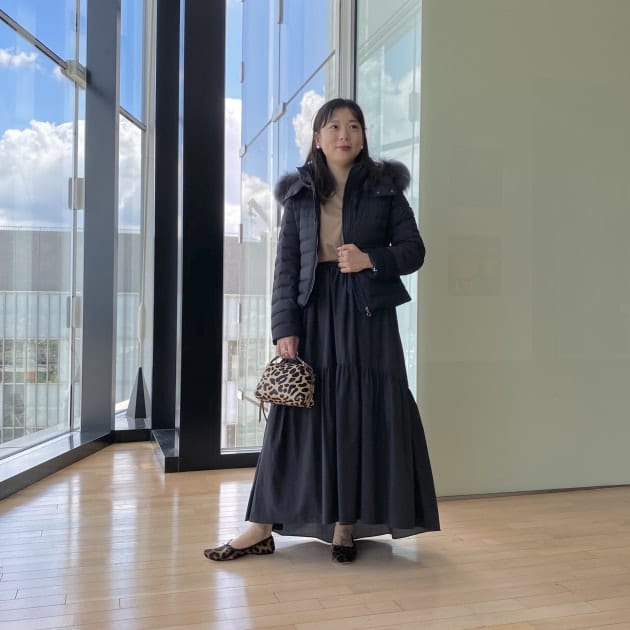 またダウンコートなのにボトム次第ではフィットアンドフレアが実現できますね。