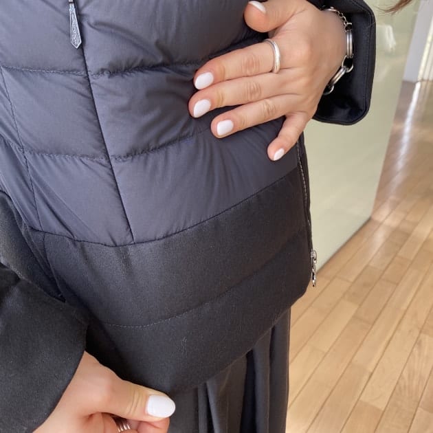 すっきり見せたい上半身は細い幅ですっきり、ボリュームを出したい切り替え下(腰周り)はダウンパックの幅を広めにふっくらとさせていますね。