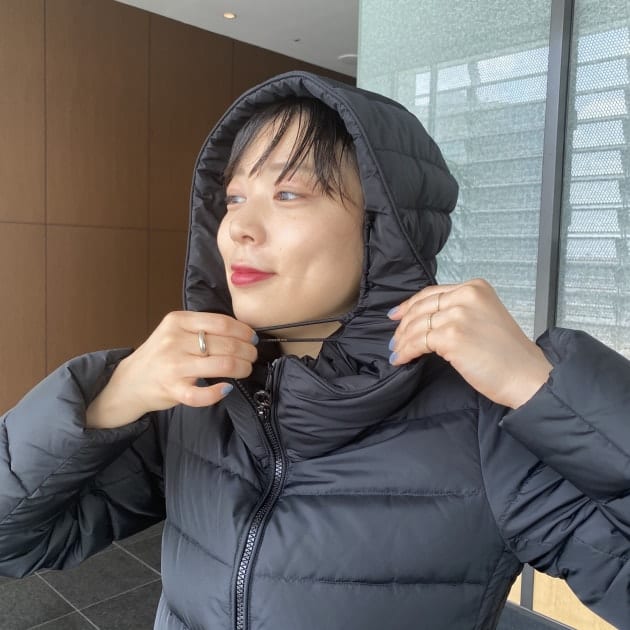 今回スタッフに着てもらった感想ですが、ショートヘアだとこのダウンとても映えますね♪