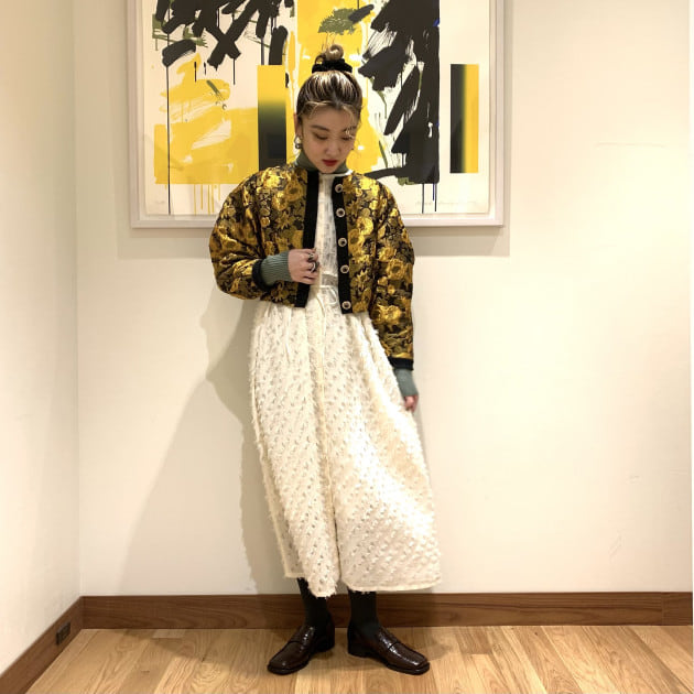 ひらりー「キルティングコートって沢山ありますよね。その中でも2トーンはほぼ見たことない!被らないのが嬉しいポイントですよ!着丈の長いワンピースでも合わせやすいサイズ感です。なんといっても軽くて暖かいのが最高だ〜。」