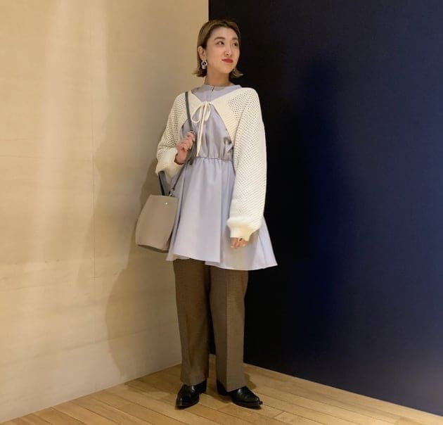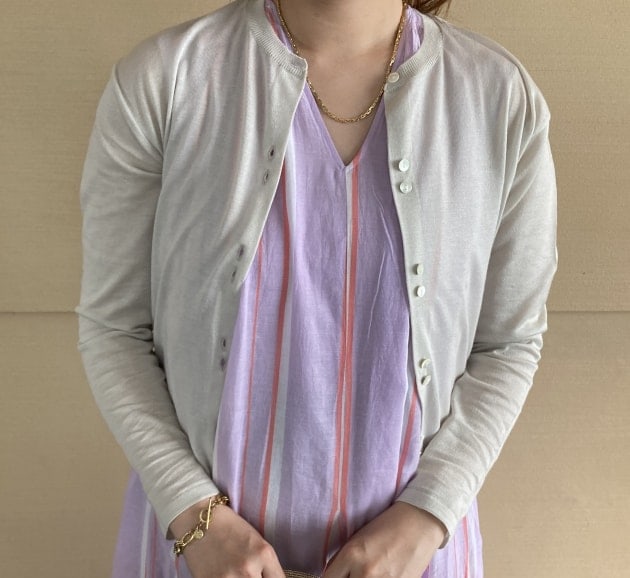 アームホールが大きいので、袖にボリュームのあるワンピースにも合わせていただきやすいです。