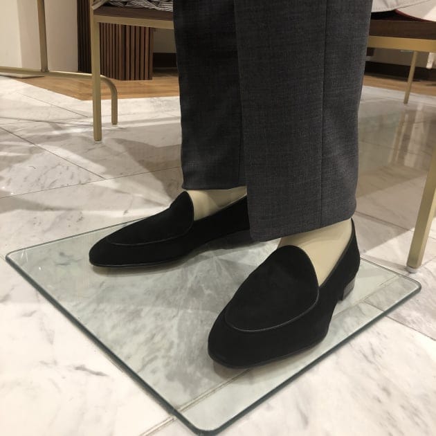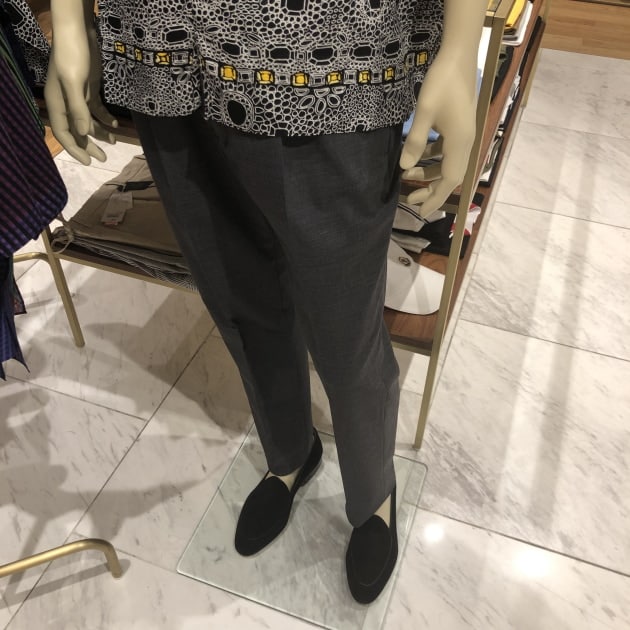 スムースレザーのローファーなので、ベルトも表革で素材感を合わせて。