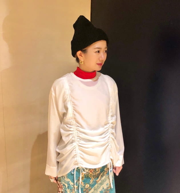 Ray BEAMS / バック プリーツ クルーネック Tシャツ