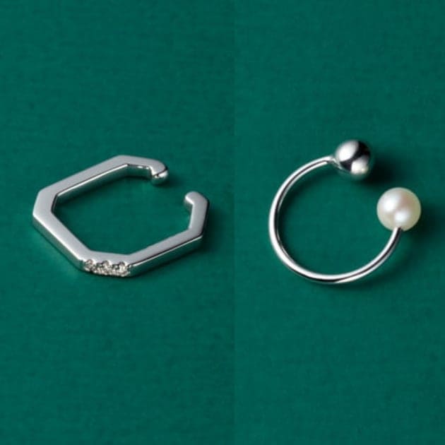ダイヤモンドをあしらったスクエア型イヤカフも。