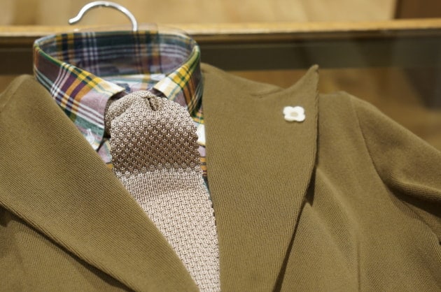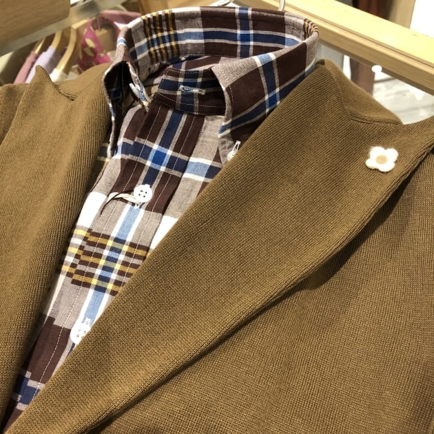 同色系のコーディネートもバランスが良いですね!「LARDINI」のニットジャケットと相性抜群です。