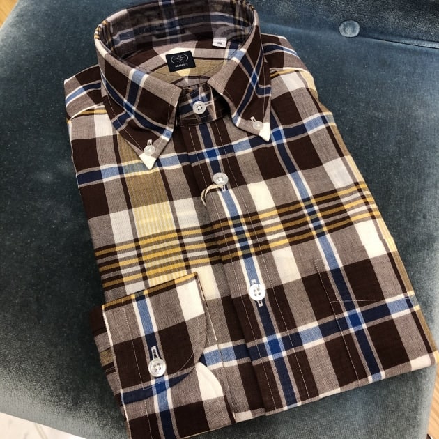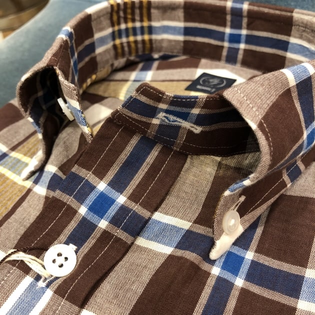 BEAMS F / ブラウン マドラスチェック ボタンダウンシャツ