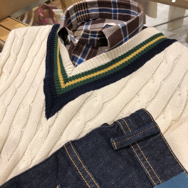 インナーに使うと、控えめにチェック柄が出てアクセントとなりますね。