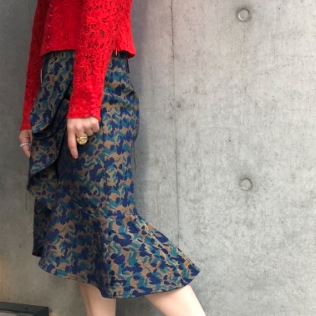 フリルブラウスとパッチワークレースのスカート。